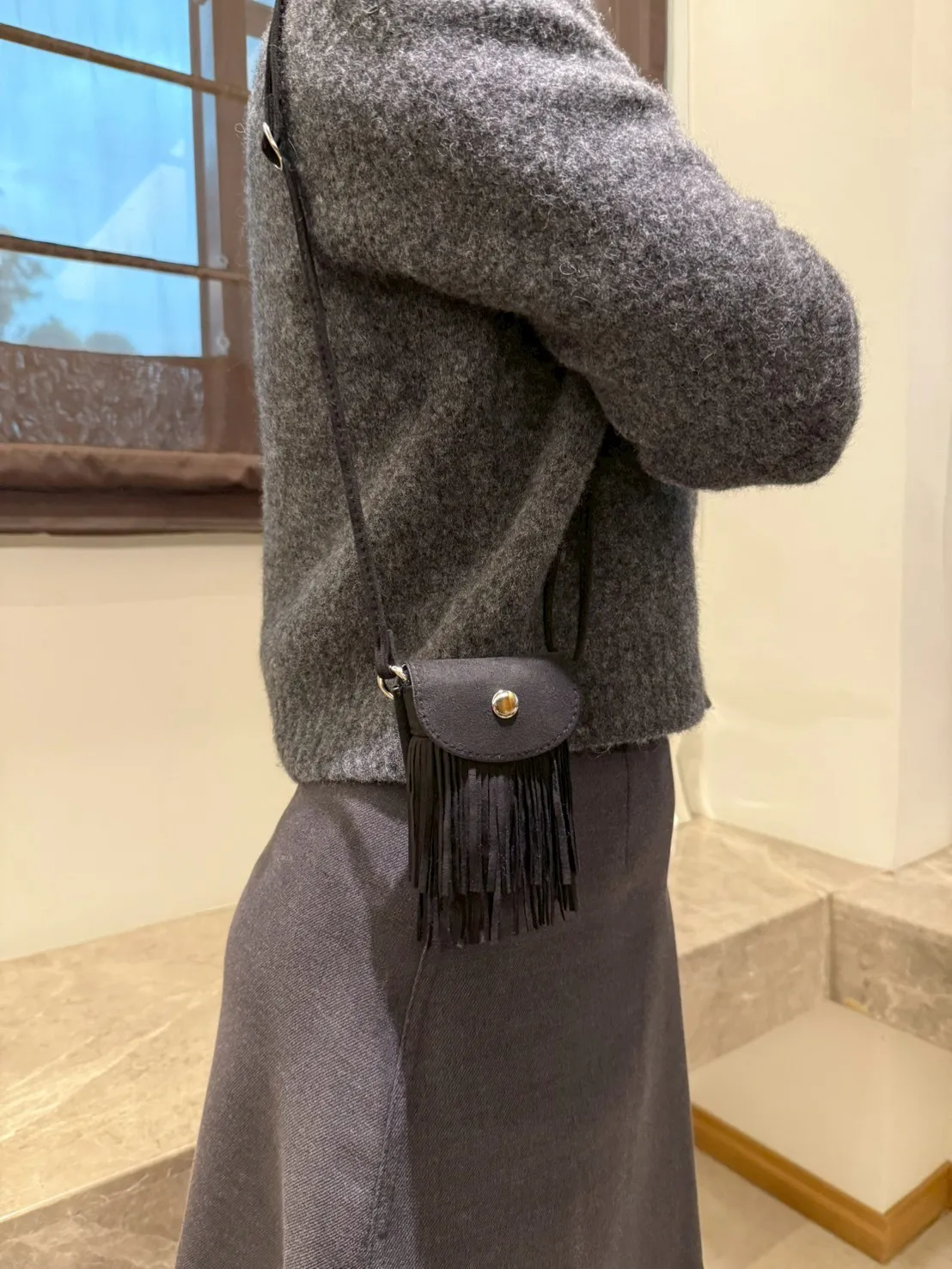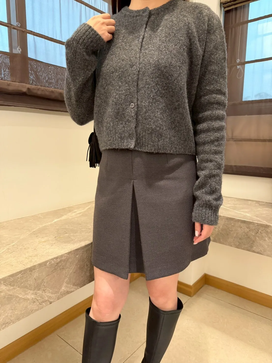 短版毛呢針織。溫柔的冷霧灰