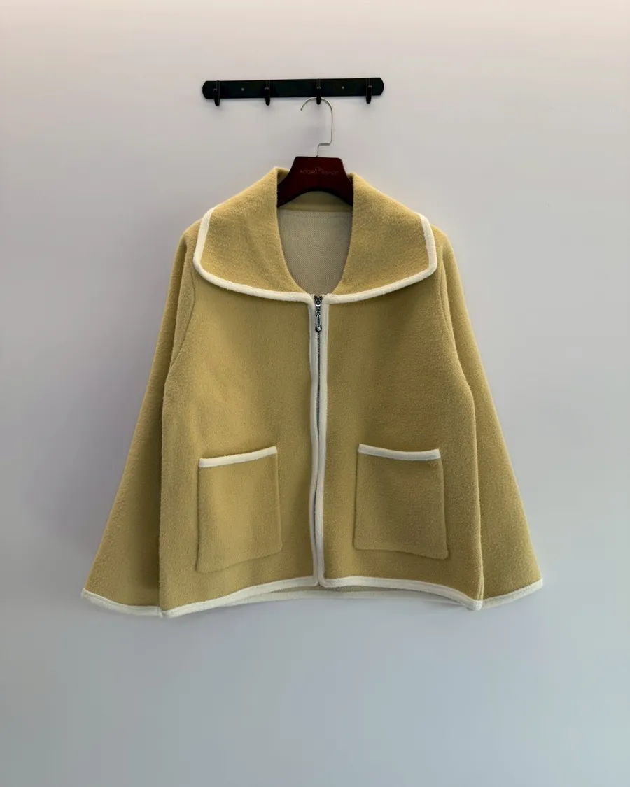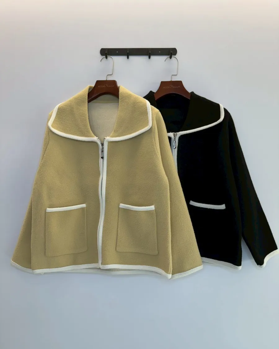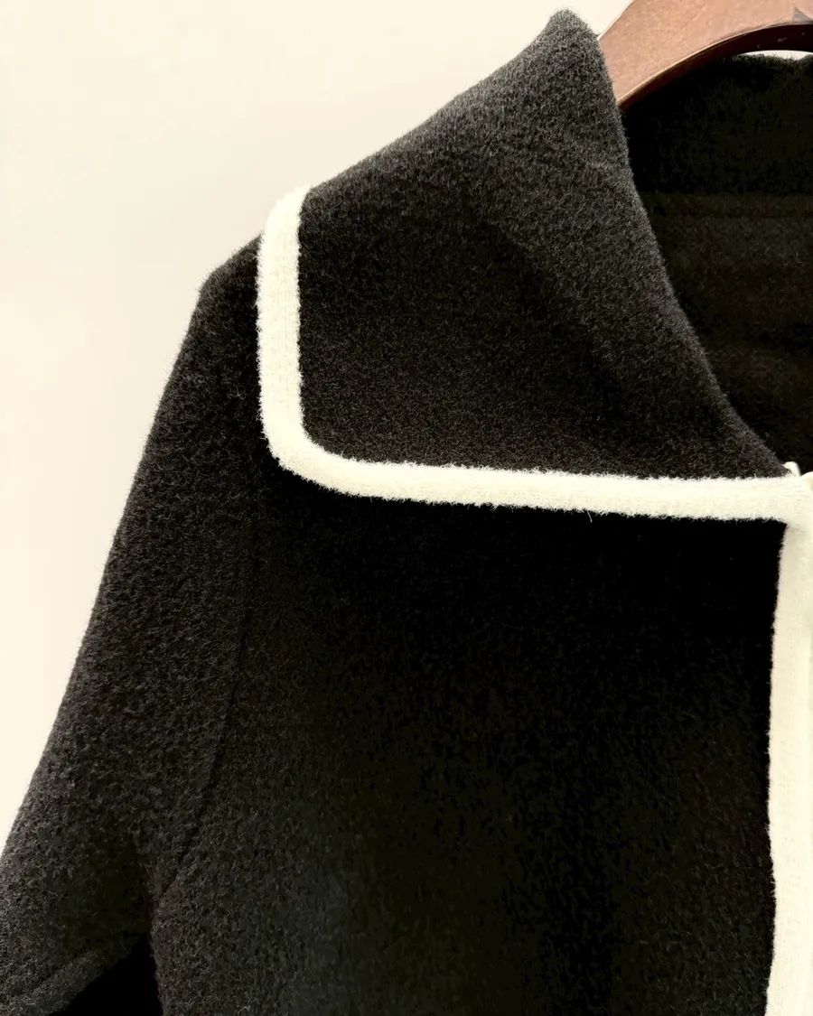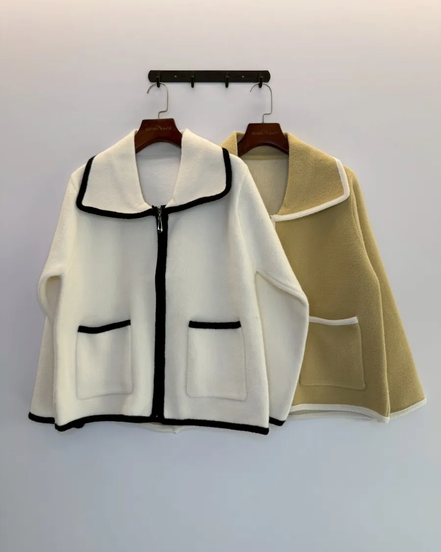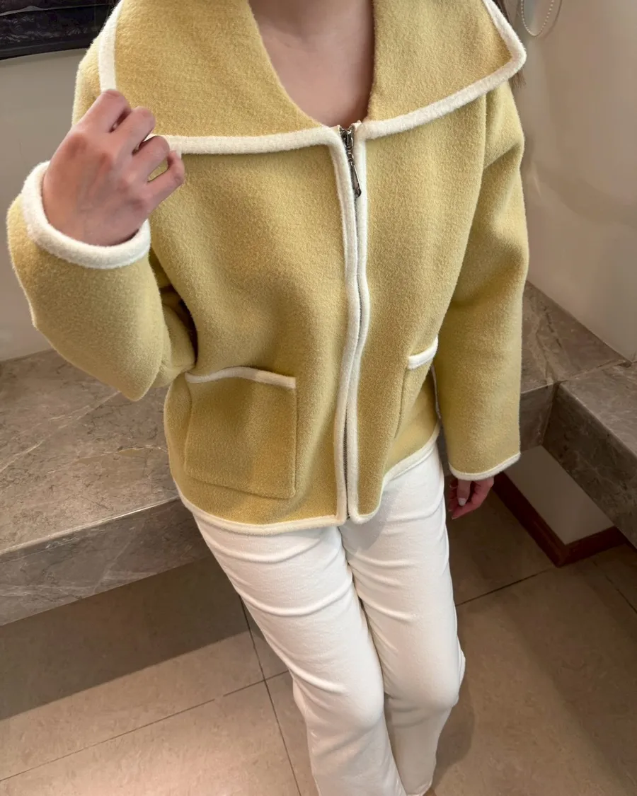大翻領。撞色滾邊