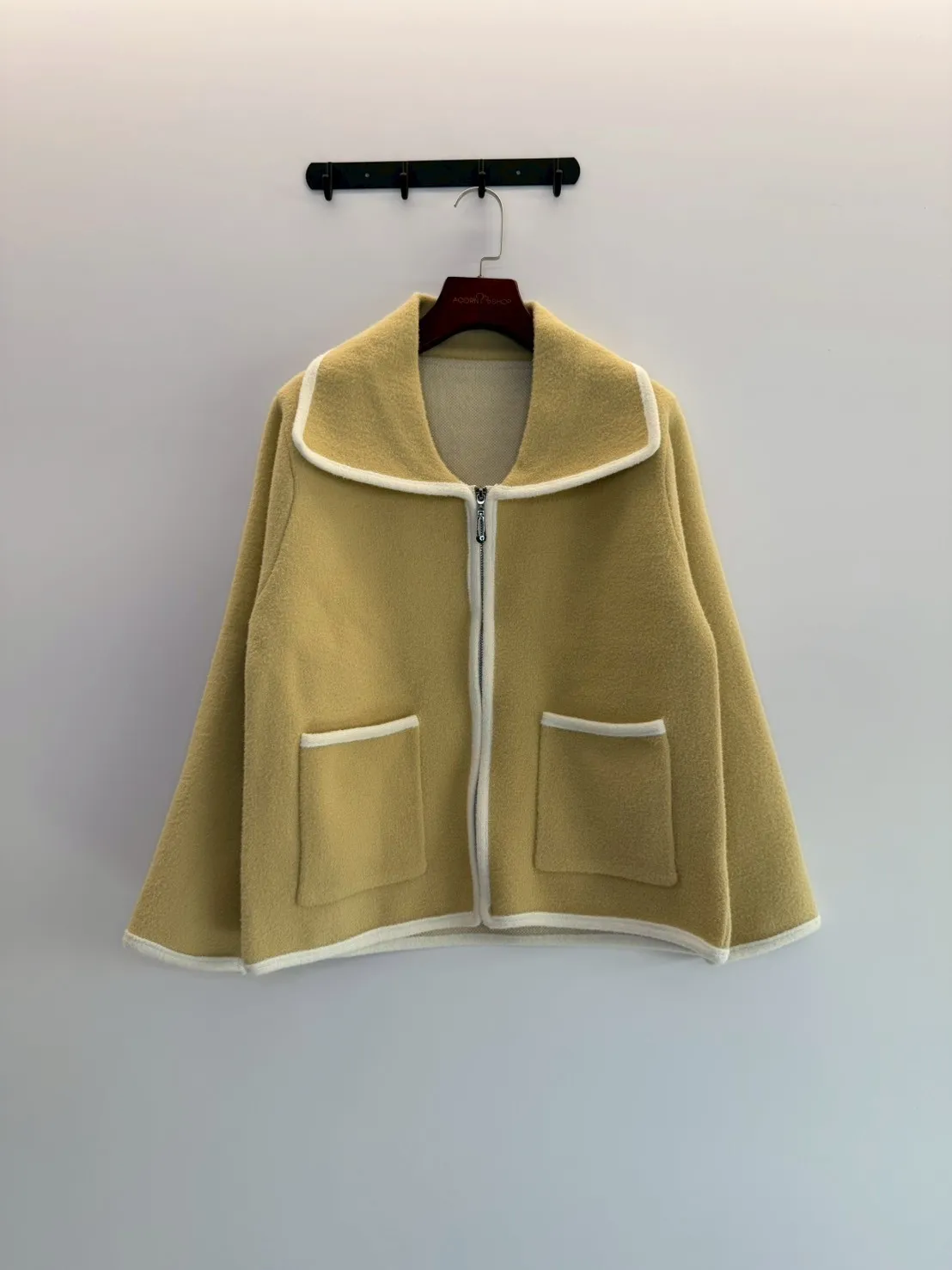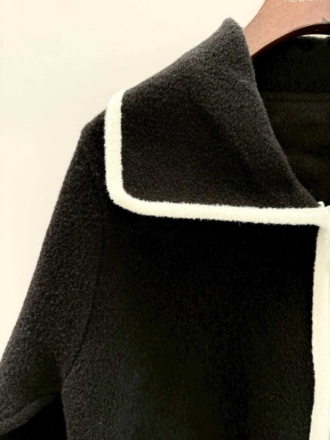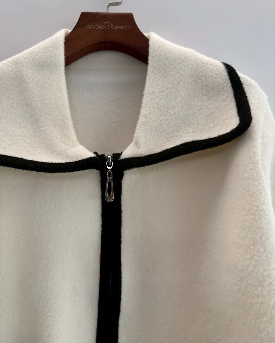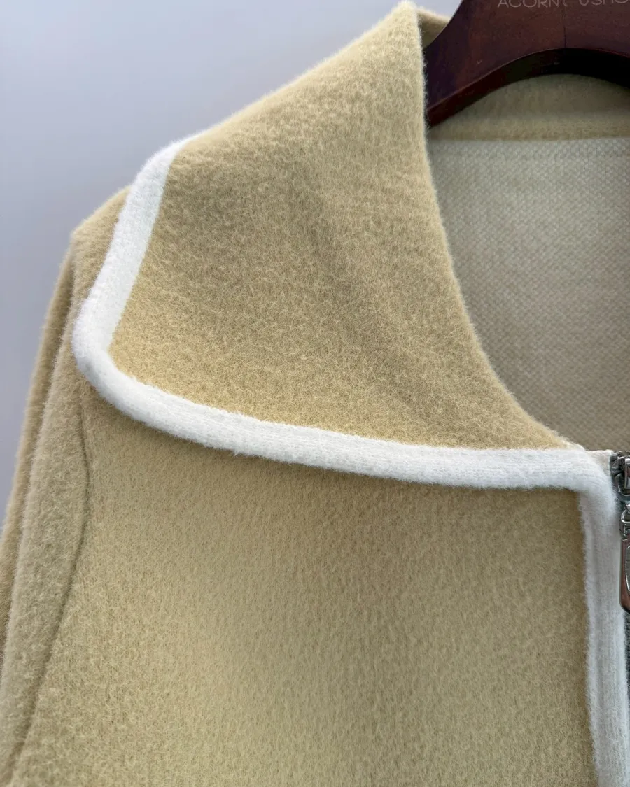 大翻領。撞色滾邊