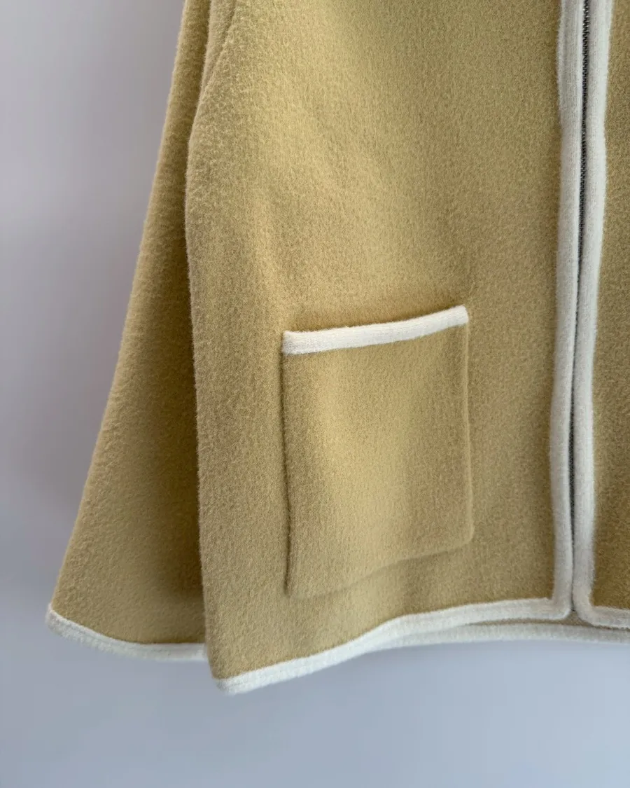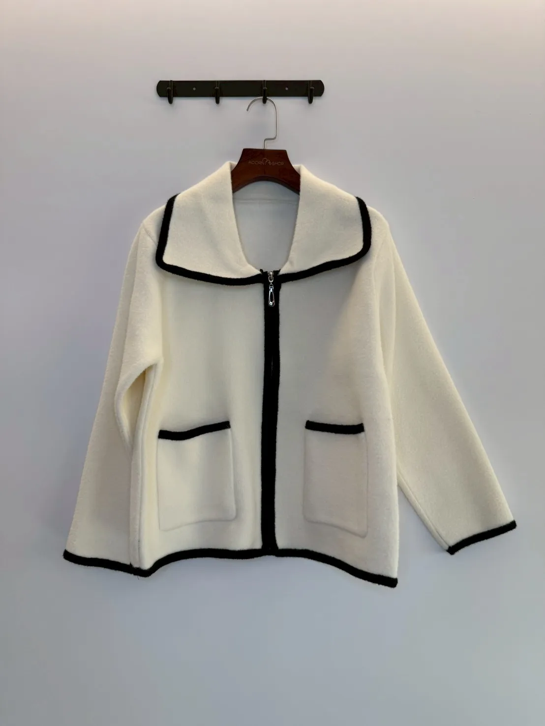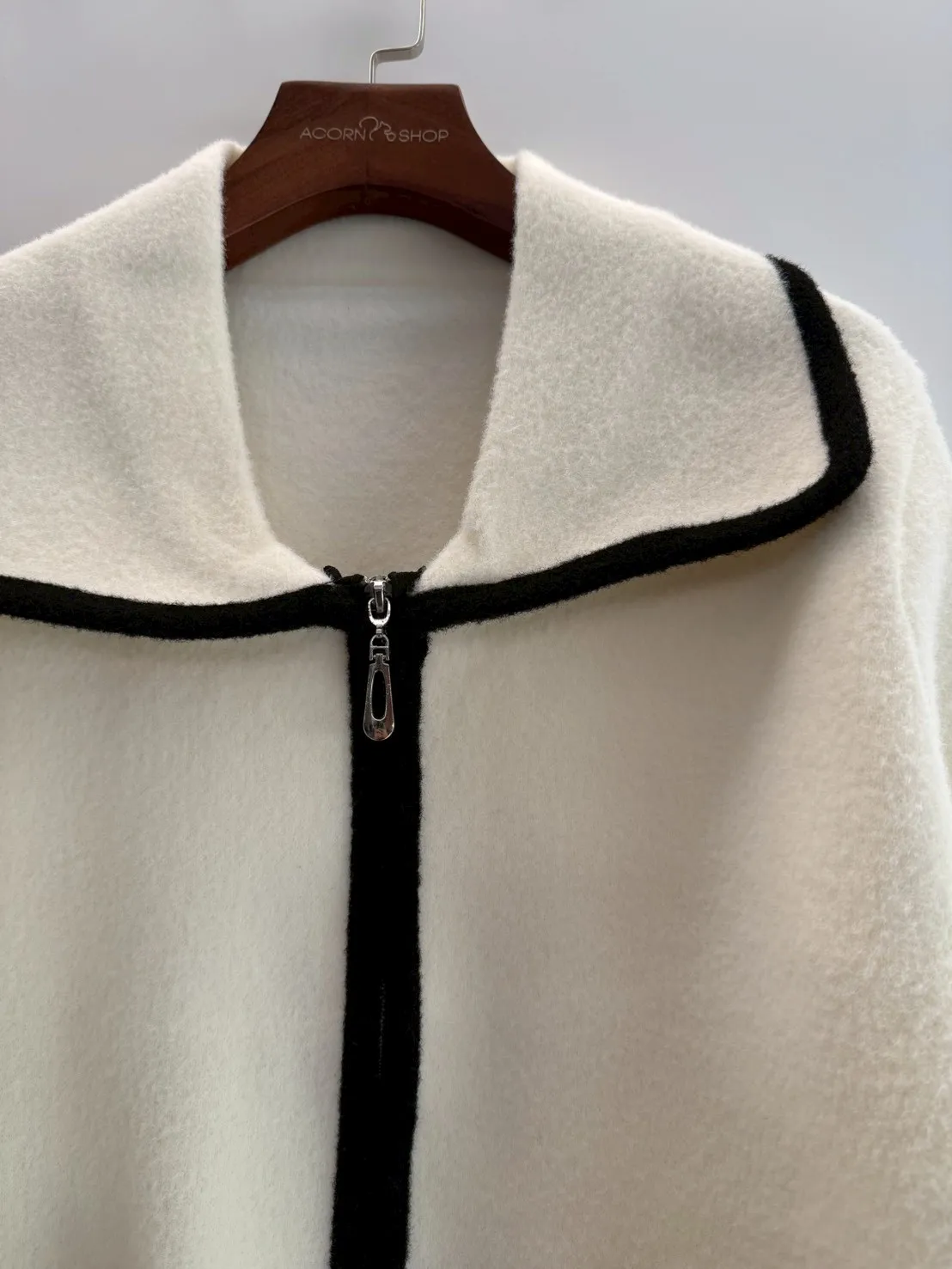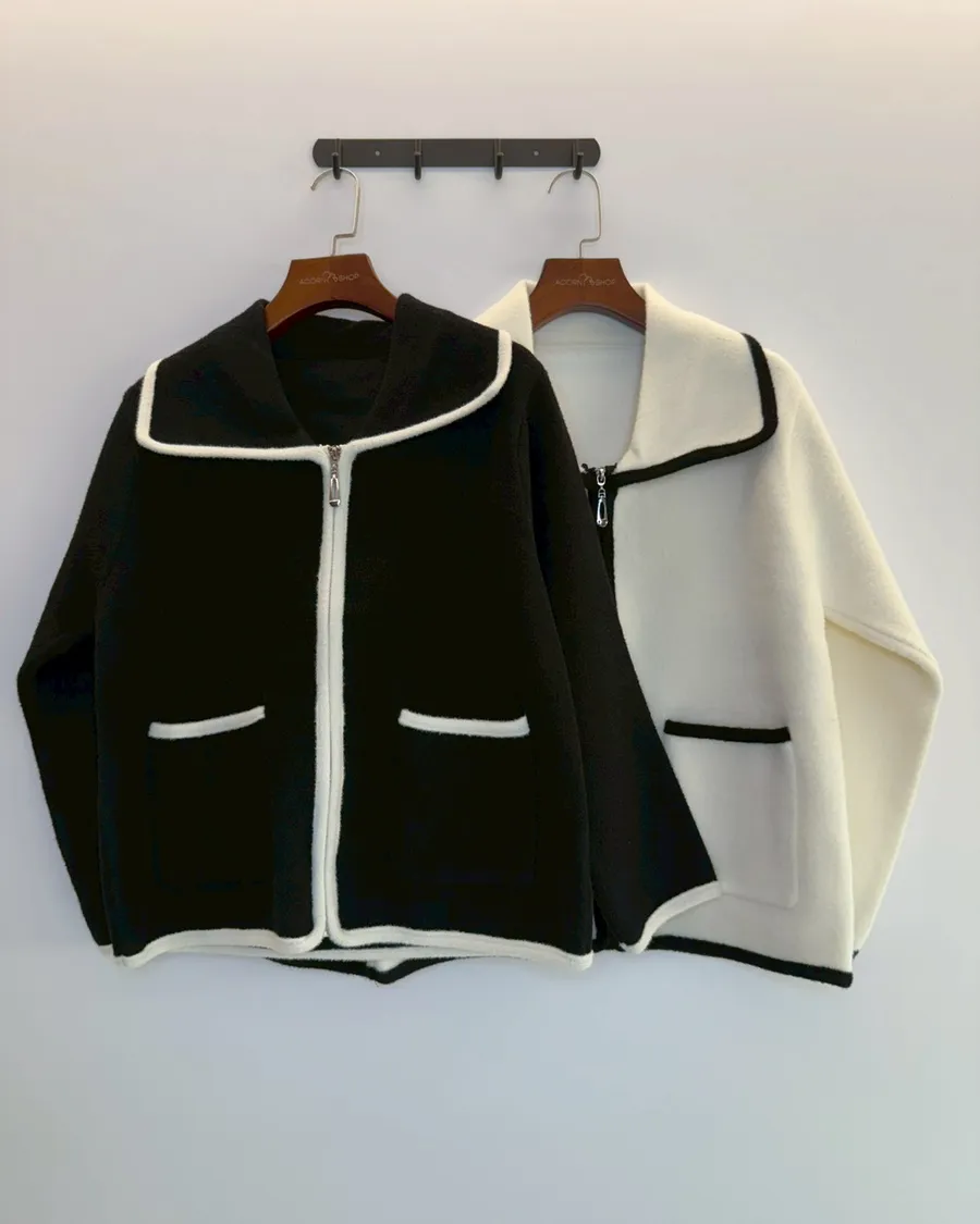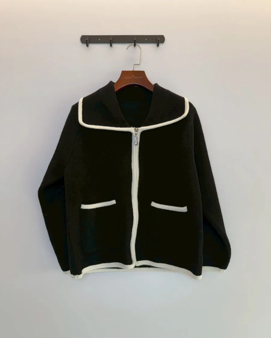 大翻領。撞色滾邊