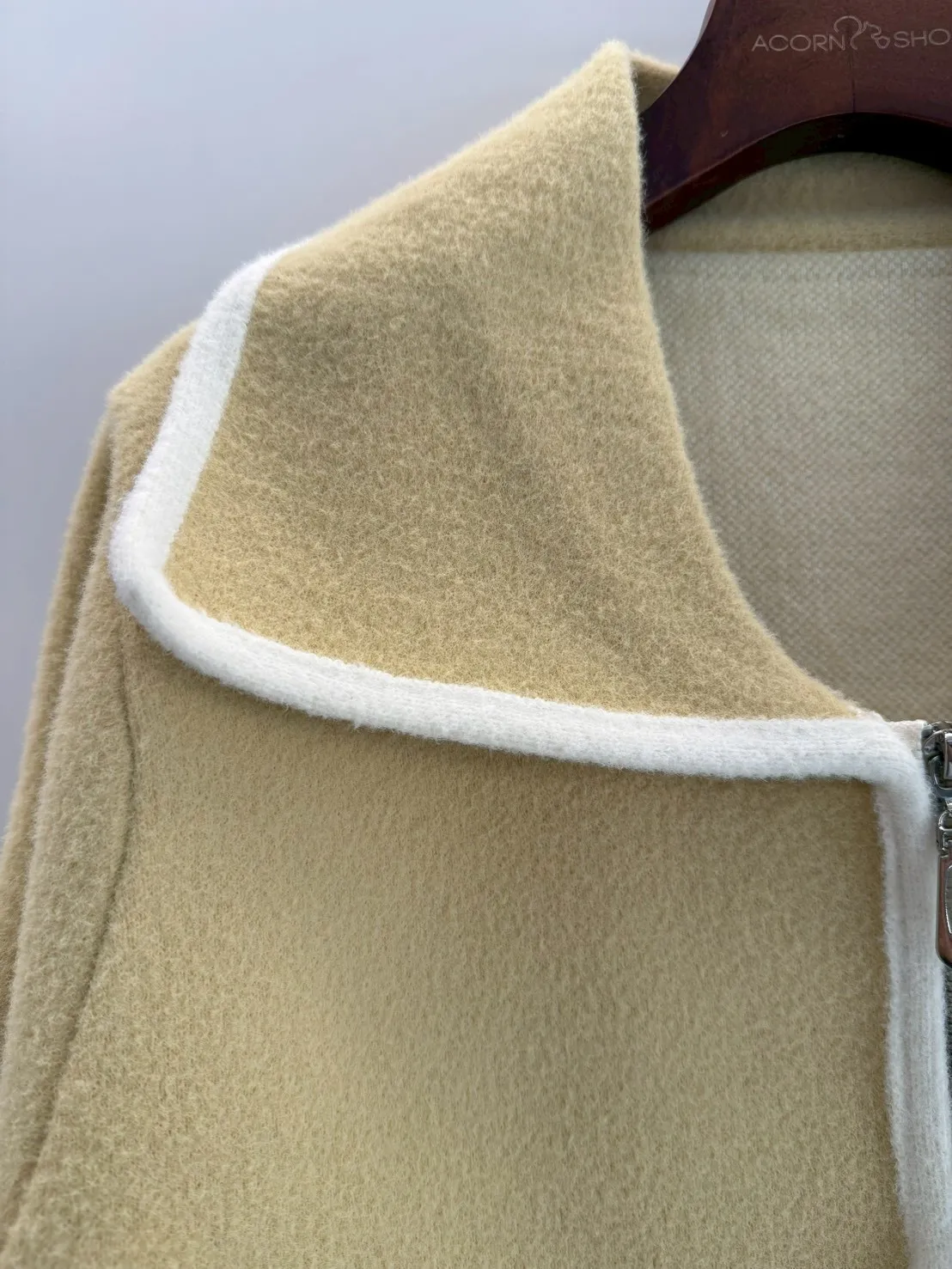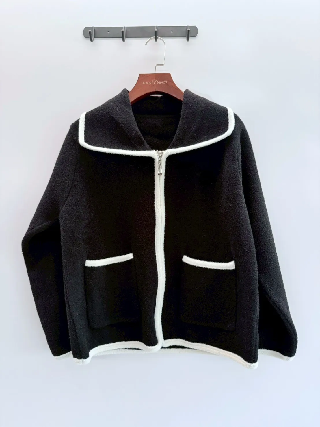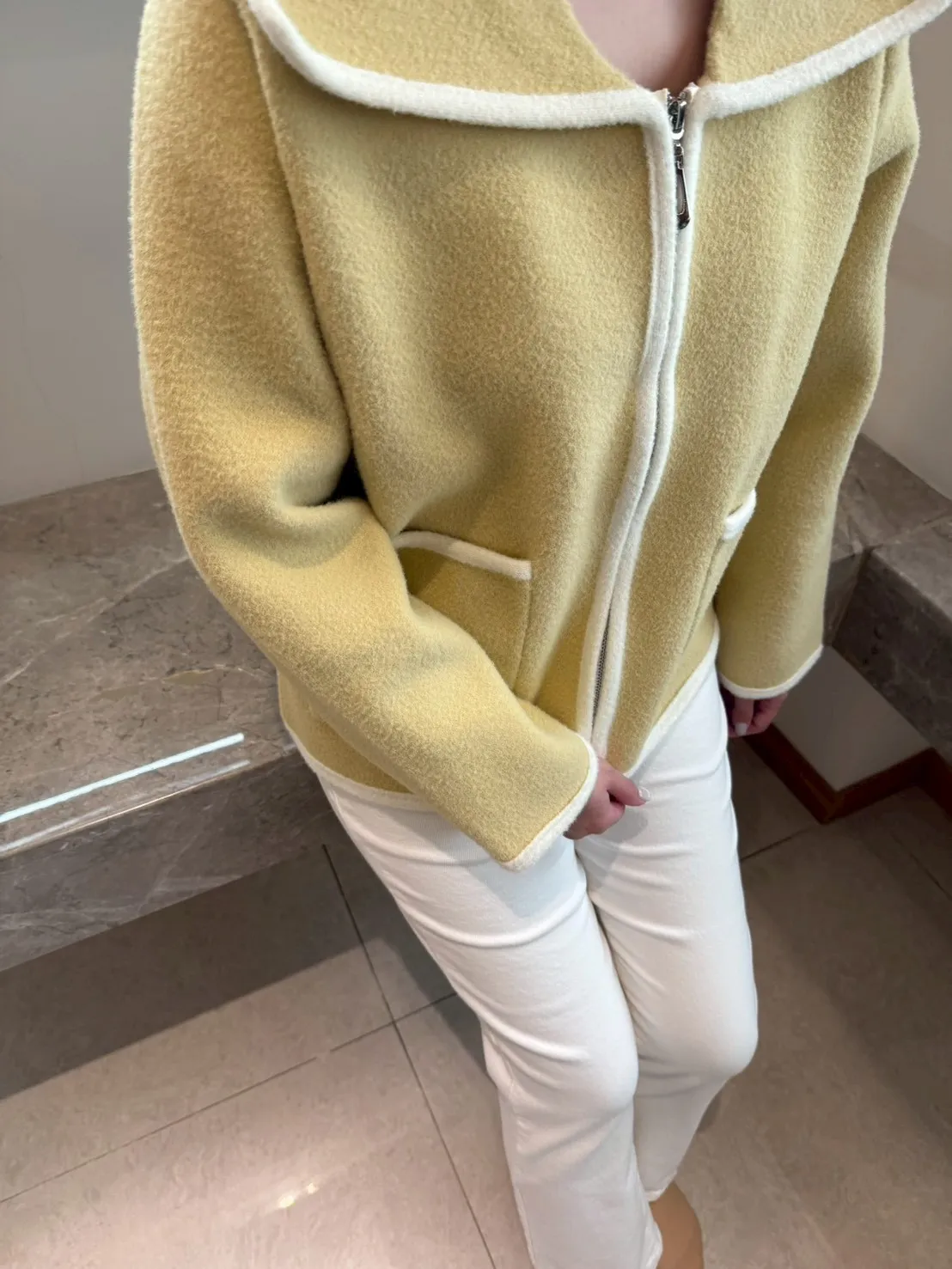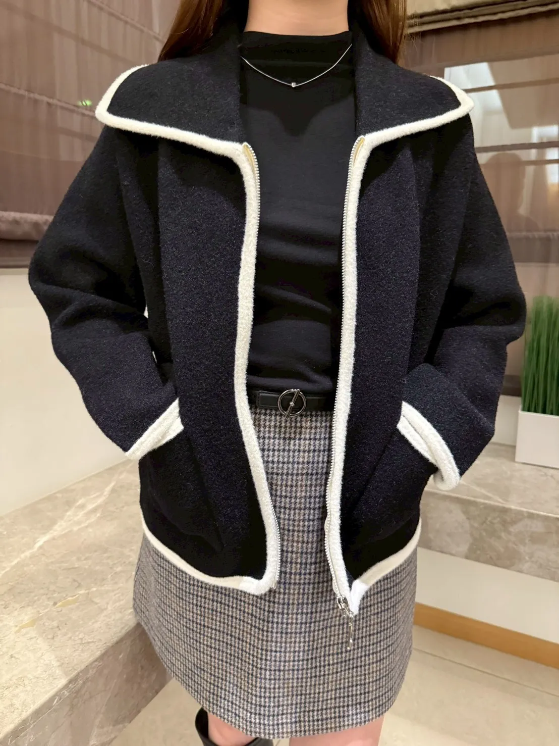 大翻領。撞色滾邊