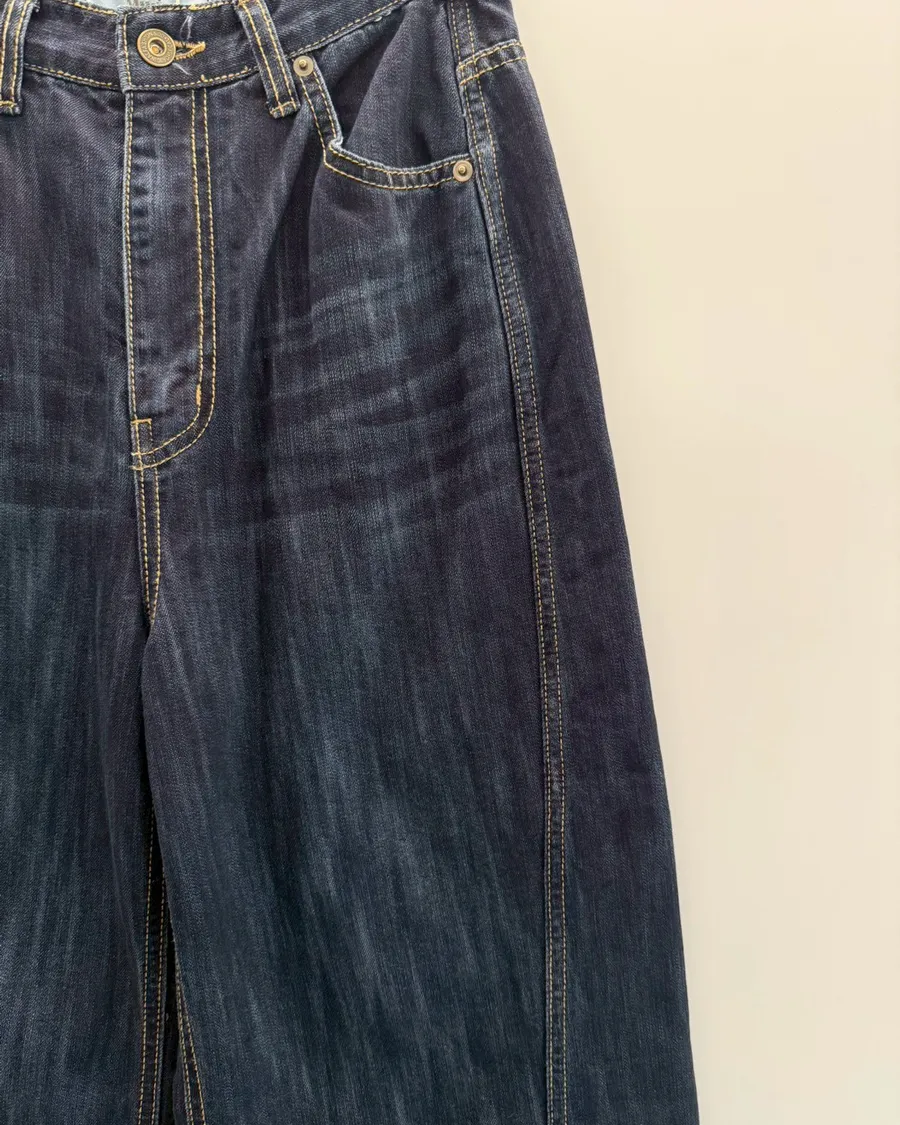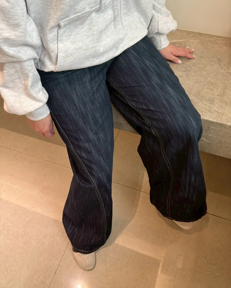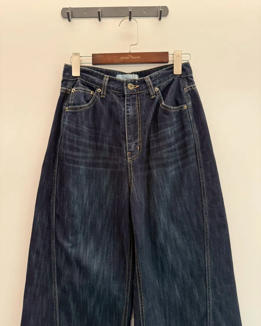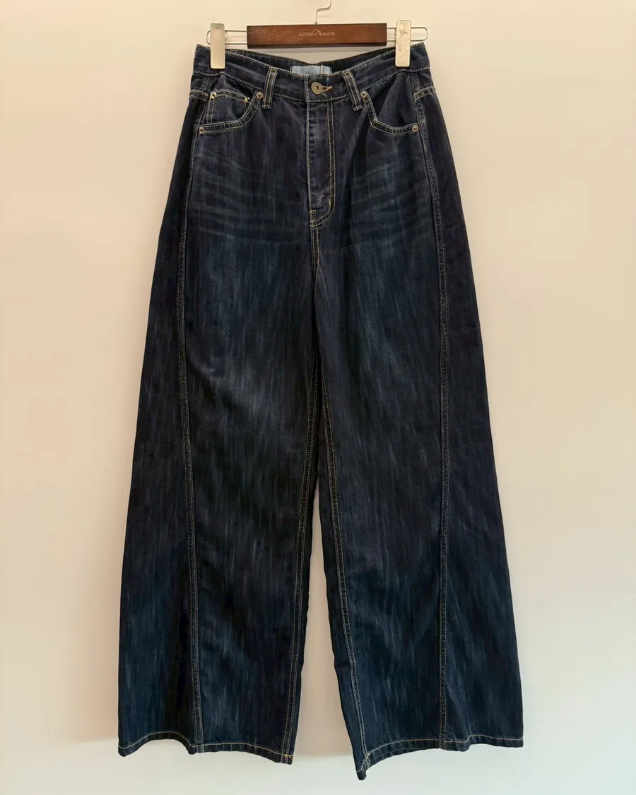 首爾暮藍高腰牛仔寬褲
