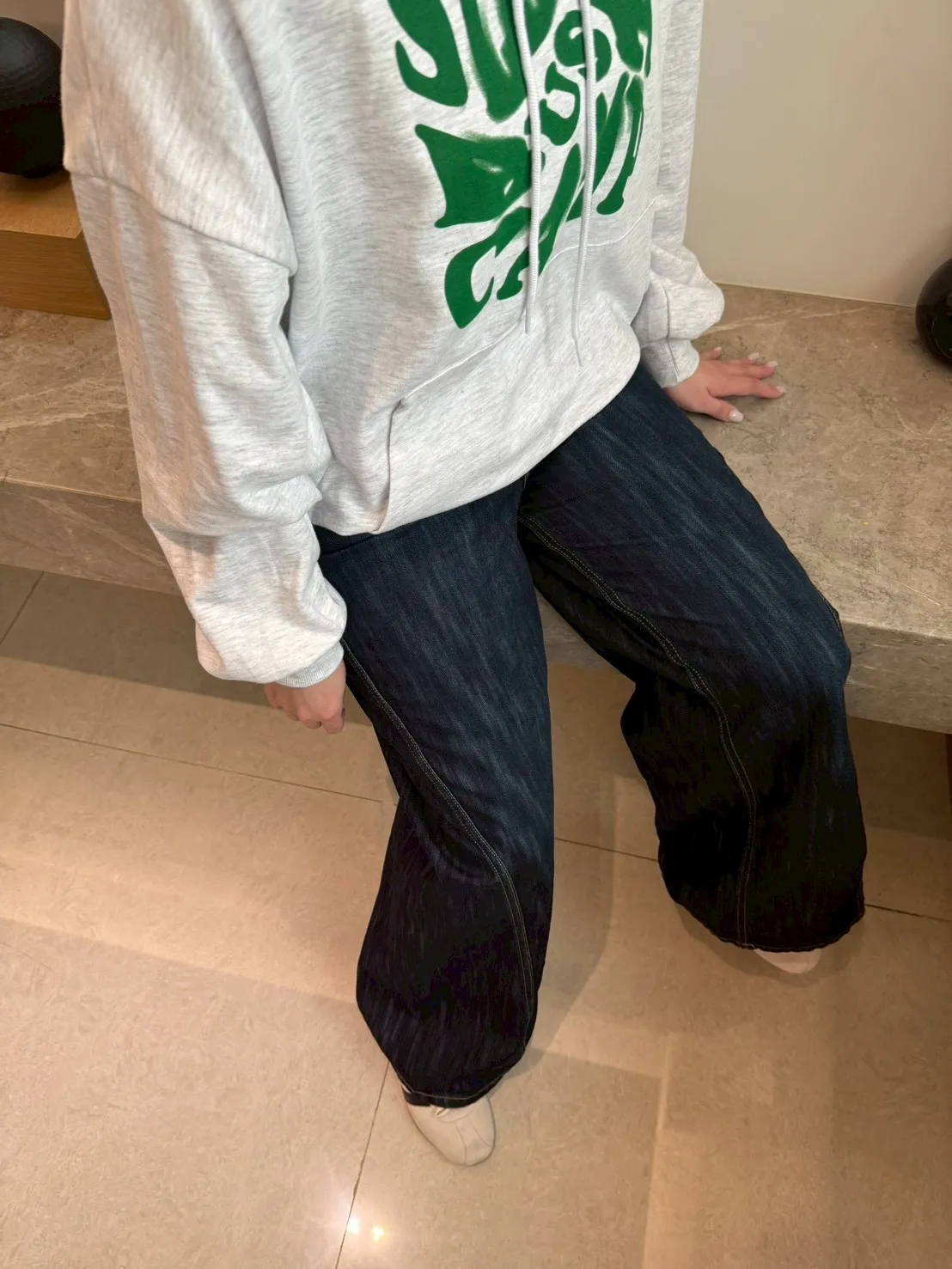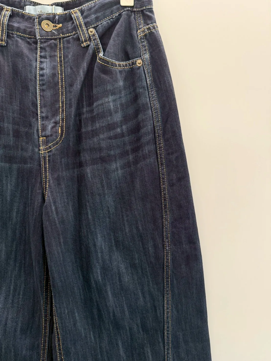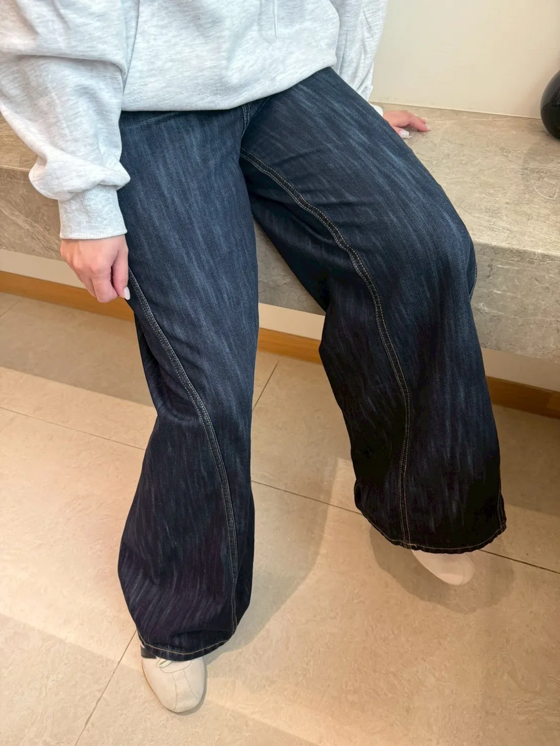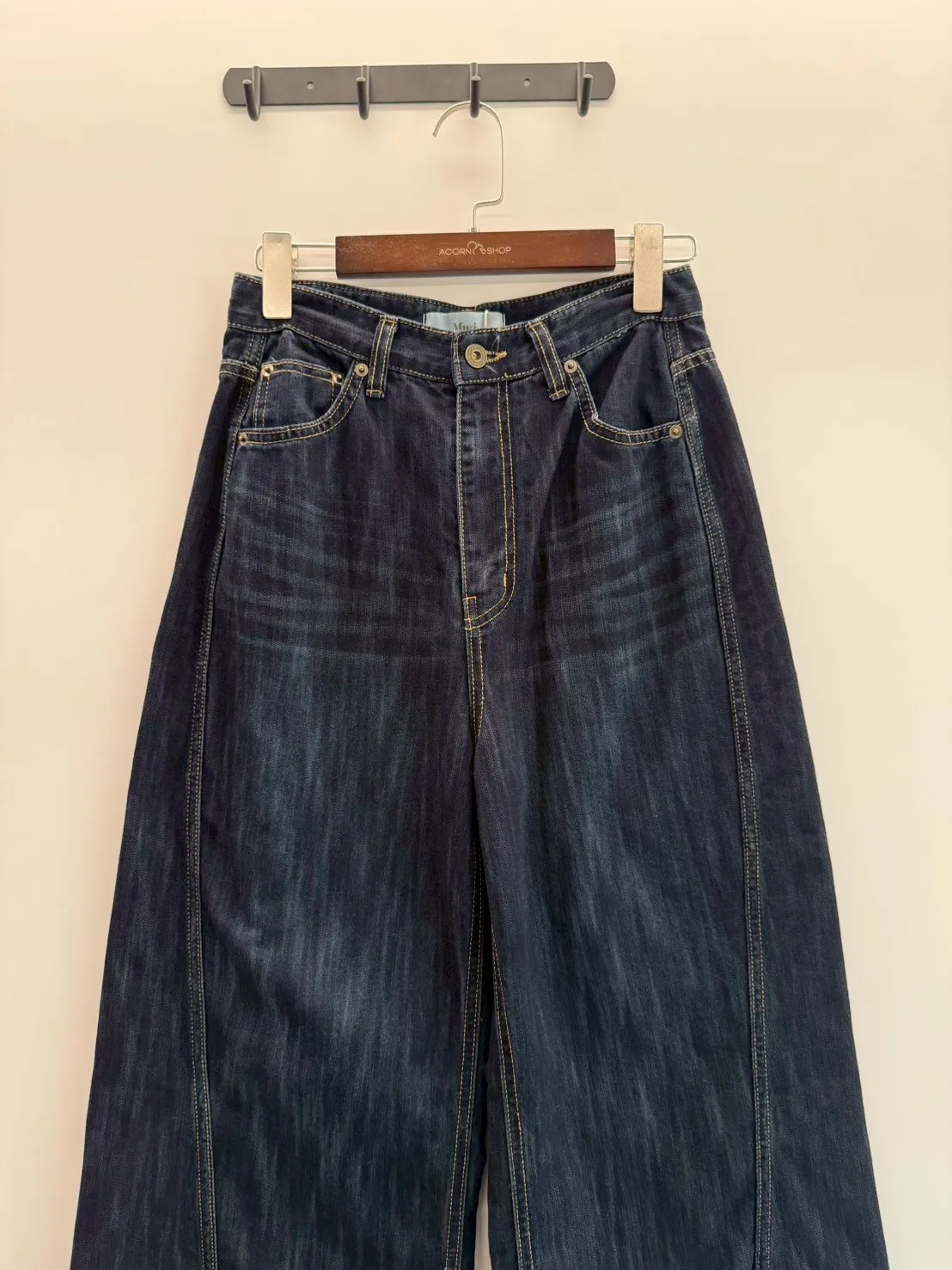 首爾暮藍高腰牛仔寬褲